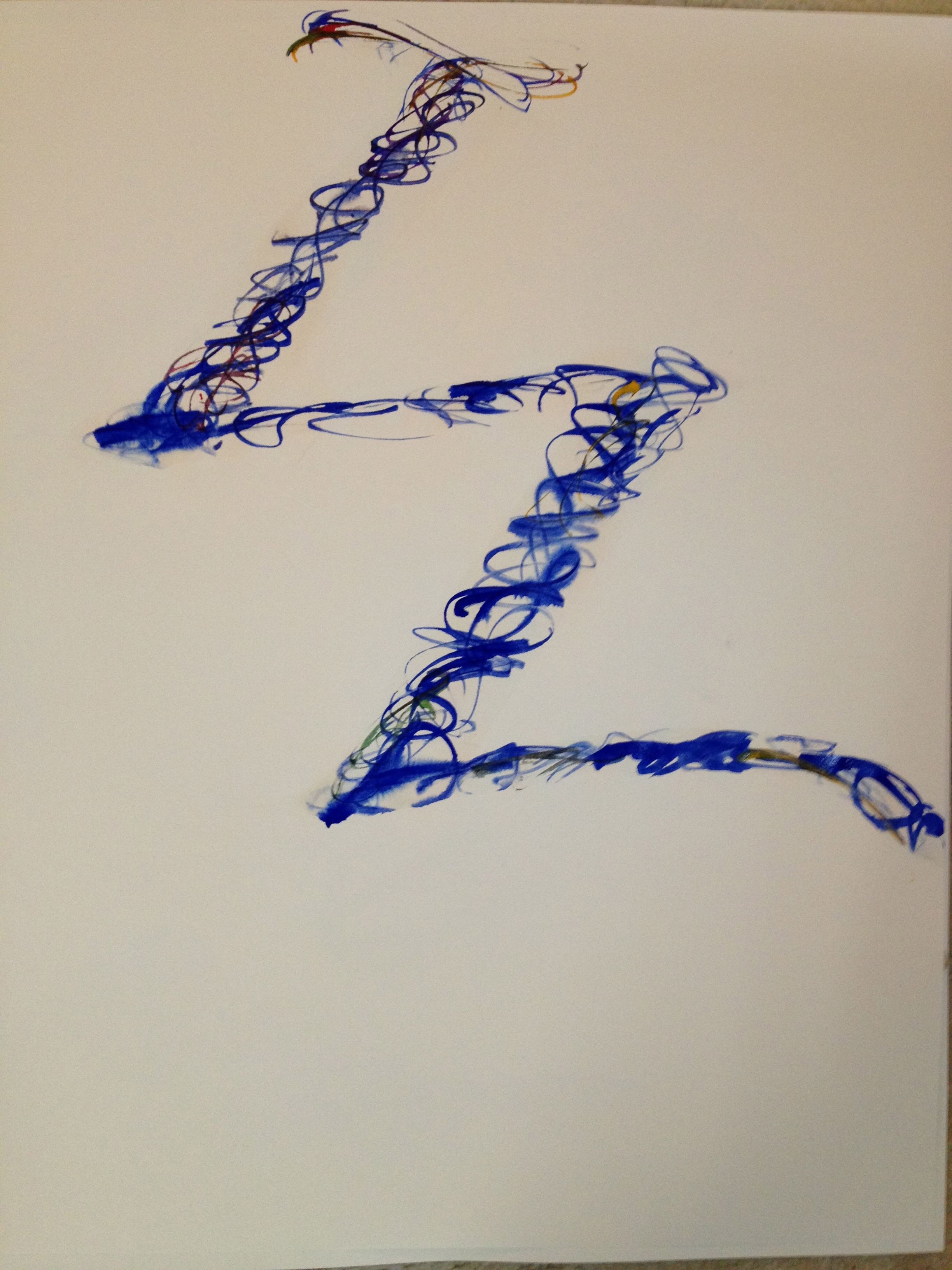 Water-enhanced portrait of a W on edge. 24″ x 36″